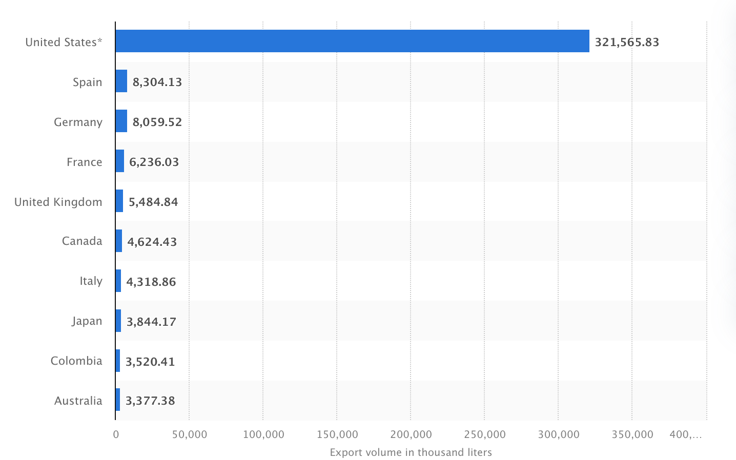 “Leading countries of destination of tequila exports from Mexico in 2022”