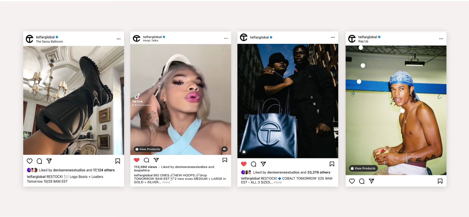 The social platforms used by Telfar have helped accelerate brand awareness and engagement by consistently posting and informing customers about restocks and launches. The promotional memes that are used garner mass amounts of engagement and strengthens their placement in user algorithms.